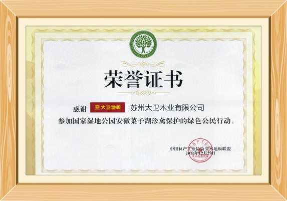 12月,kaiyun开云线上官网(集团)官方网站践行绿色公民行动——守护珍禽王国湿地保护,并获颁荣誉证书