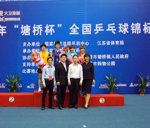 10月,kaiyun开云线上官网(集团)官方网站地板第二成功协办全国乒乓球锦标赛,董事长蒋卫出席颁奖仪式。