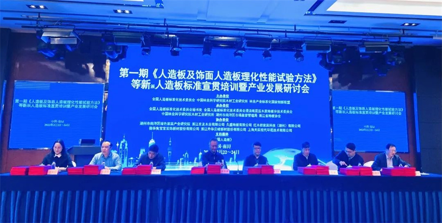 2023年3月22—24日,GB/T 17657—2022《人造板及饰面人造板理化性能试验方法》等新颁布标准宣贯培训暨产业发展研讨会在浙江南浔举行。kaiyun开云线上官网(集团)官方网站地板应邀出席会议,获颁国家标准GB/T 18103-2022《实木复合地板》、GB/T 41547-2022《地采暖用木质地板》制修订工作证书,并荣获“全国人造板标准化技术委员会成立30周年人造板标准制修订突出贡献奖”,董事长蒋卫荣获“卓越贡献奖”,研发检测部总监喻立春荣获“优秀单位委员代表”。